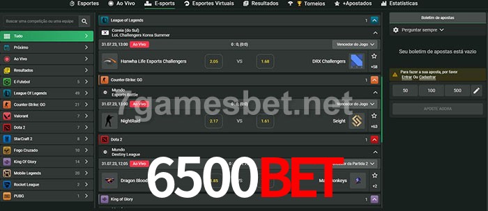 O 6500Bet oferece uma grande seleção de opções de apostas em e-sports com probabilidades competitivas